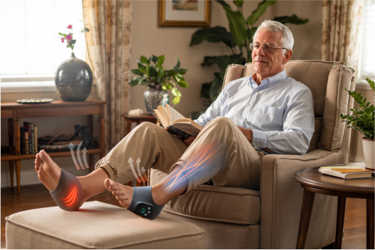 FootRenew combines soothing heat, gentle massage, and targeted compression to support healthy circulation in the feet, ease discomfort from neuropathy, and relieve symptoms of occasional edema and plantar fasciitis.