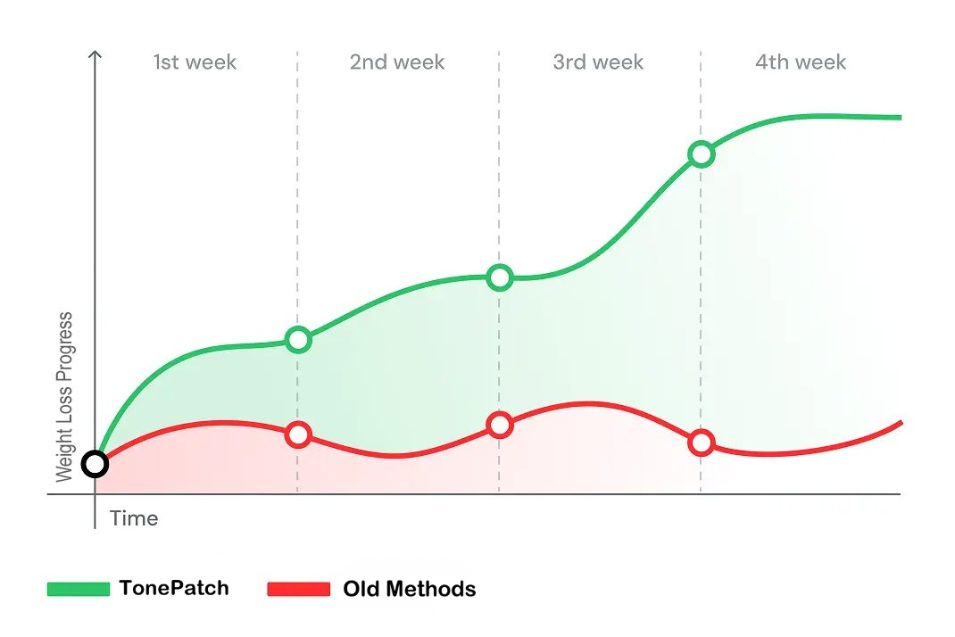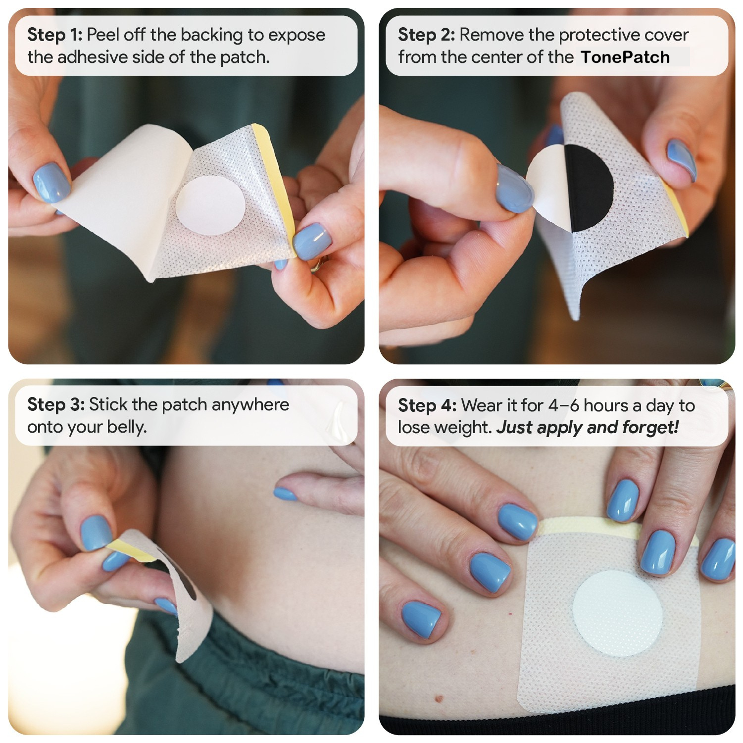 TonePatch features a gentle, long-lasting adhesive that ensures it stays securely in place on the skin throughout the day, suitable for various body movements and skin types.